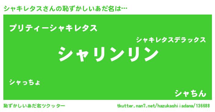 | 意味不明あだ名 | 『住所不定無職シャキレタス(47歳)』 |