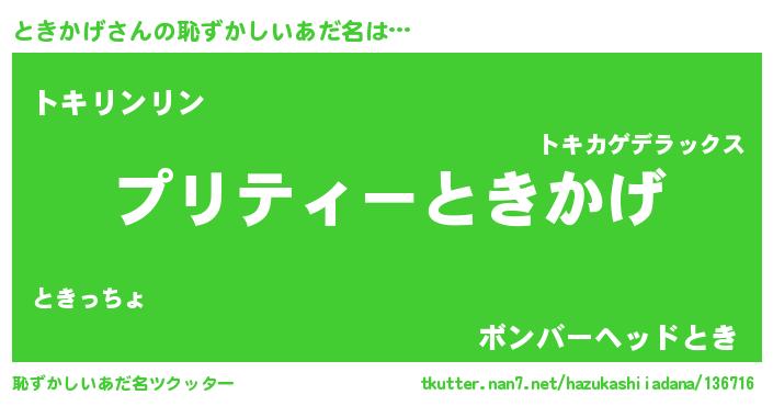意味不明あだ名 | 『ペロリンときかげ』『自称ときかげ』 |
