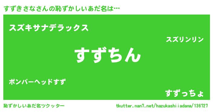 | ヒーロー風カッコイイあだ名 | 『ネオスズキサナ』『仮面スズダー』 |