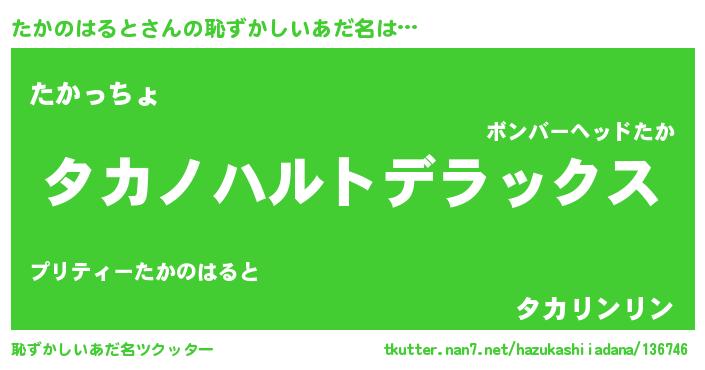 | 意味不明あだ名 | 『自称たかのはると』 |