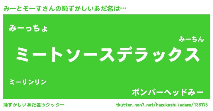 | 意味不明あだ名 | 『自称みーとそーす』 |