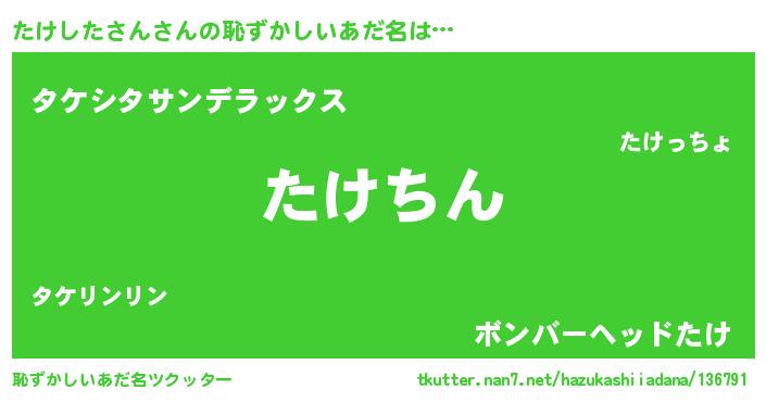 | 意味不明あだ名 | 『永久保存たけしたさん』 |