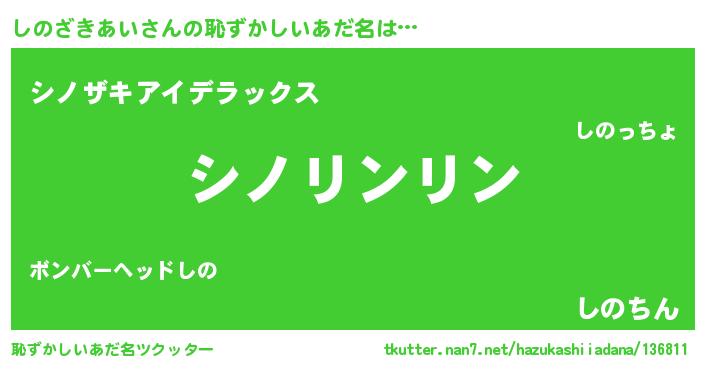 | ヘコむあだ名 | 『しのっちょ』『しのざきあい(遠い目)』 |