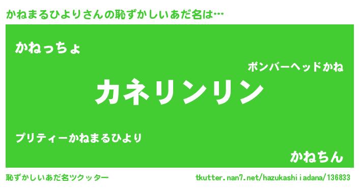 | ポケモン風あだ名 | 『ヒカネマルヒヨリ』『カネマダネ』 |