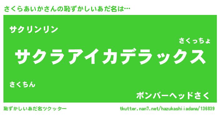 | ポケモン風あだ名 | 『サクセウス』『ヒサクラアイカ』 |