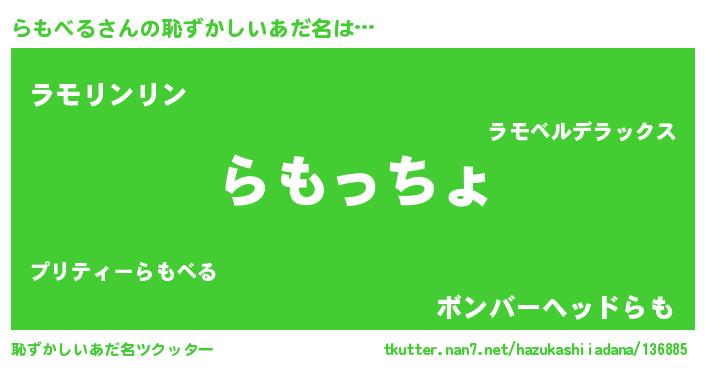 | ヘコむあだ名 | 『酢こんぶ』『らもっぺ』『らももー』 |