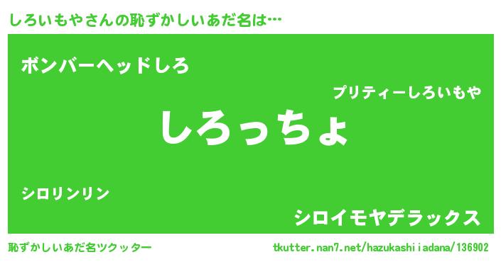 | ヒーロー風カッコイイあだ名 | 『仮面シロダー』『愛の使者しろいもや』 |