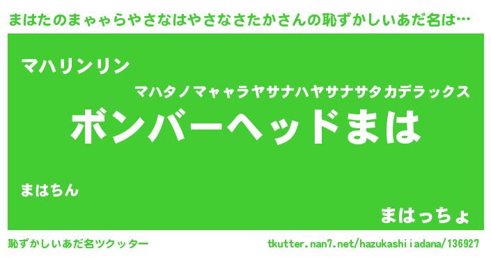 | 意味不明あだ名 | 『住所不定無職まはたのまゃゃらやさなはやさなさたか(8歳)』 |
