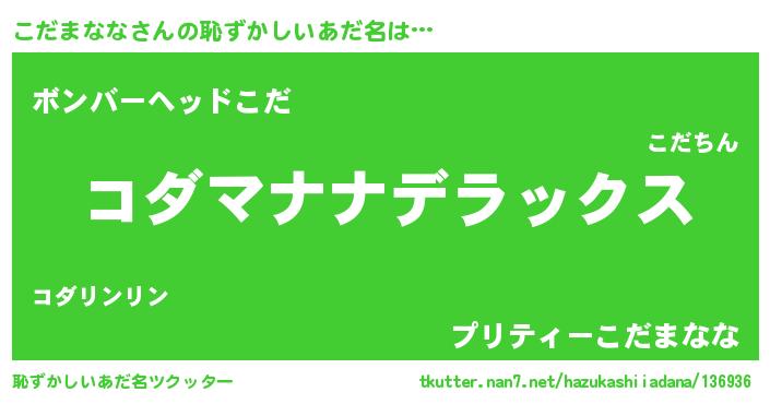 | 男性向けラノベタイトル風あだ名 | 『Re:こだまななから始める異世界生活』 |