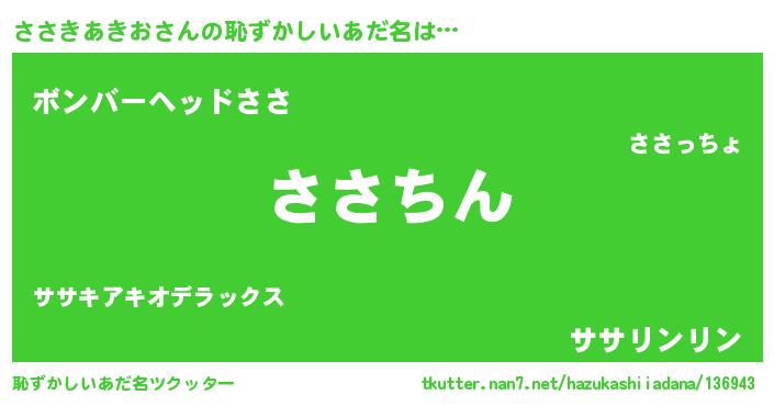| 可愛いあだ名 | 『ささぷりん』『ささきあきおママ』 |