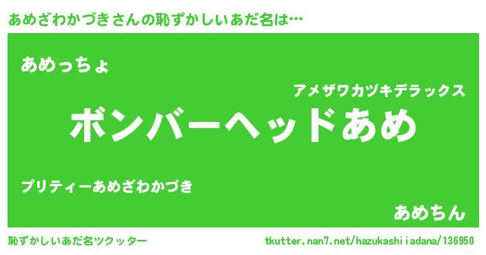 | ポケモン風あだ名 | 『アックウザ』『アメザダネ』 |