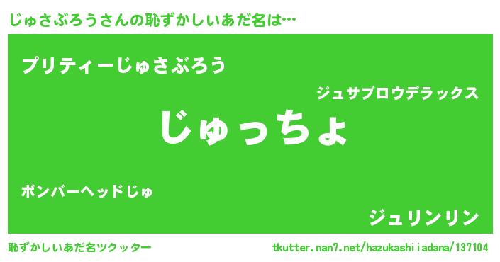 | 欧米人風あだ名 | 『じゅさぶろうクリステル』 |