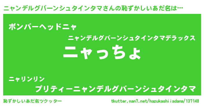 | 意味不明あだ名 | 『ニャンデルグバーンシュタインタマフォーエバー』 |