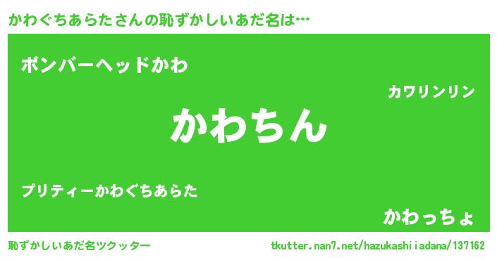 | ヘコむあだ名 | 『かわぐちあらた(笑)』『なまこ酢』 |