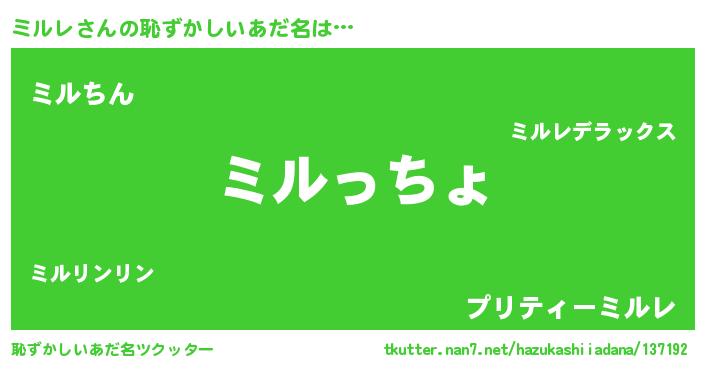 | 意味不明あだ名 | 『ミルレフォーエバー』『永久保存ミルレ』 |