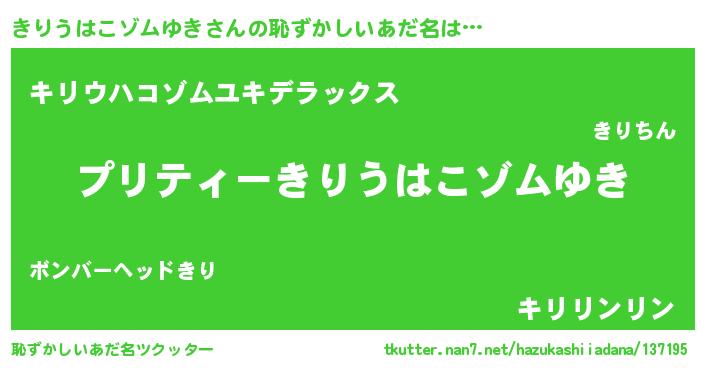 | 男性向けラノベタイトル風あだ名 | 『きりうはこゾムゆきの憂鬱』 |