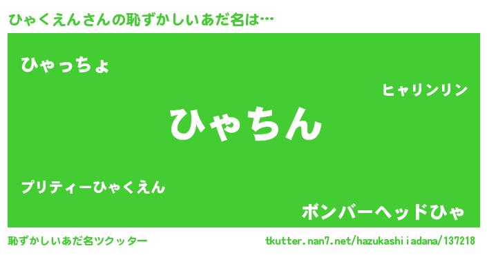 | ヒーロー風カッコイイあだ名 | 『ネオヒャクエン』『仮面ヒャダー』 |
