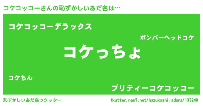 | ヘコむあだ名 | 『つくし』『コケっふぃ~』 |