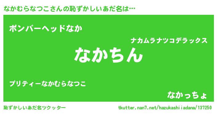 | 意味不明あだ名 | 『永久保存なかむらなつこ』 |