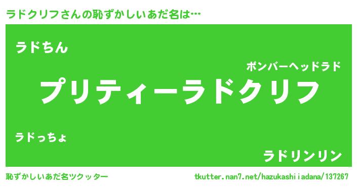 | ヘコむあだ名 | 『ラドもー』『ラドクリフ(小並感)』 |