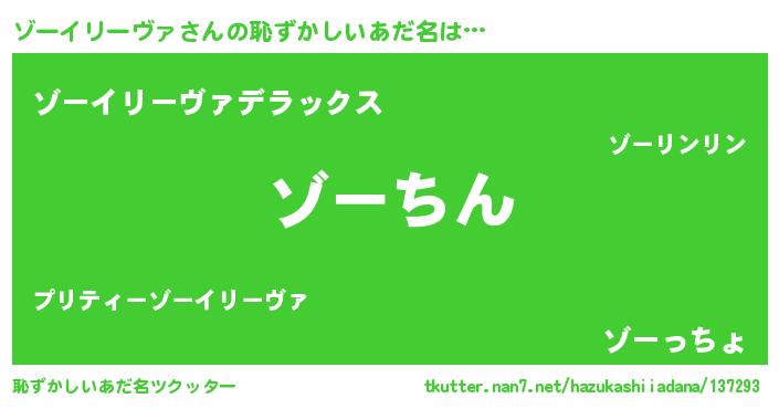 | 意味不明あだ名 | 『永久保存ゾーイリーヴァ』 |