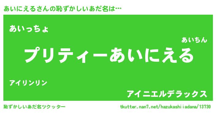 | 意味不明あだ名 | 『ペロリンあいにえる』『自称あいにえる』 |
