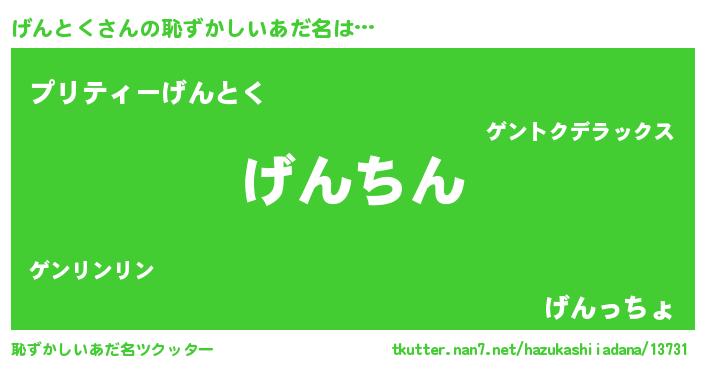 | ヘコむあだ名 | 『げんとく(遠い目)』『げんもー』 |