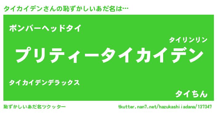| ヘコむあだ名 | 『タイもー』『タイカイデン(笑)』 |