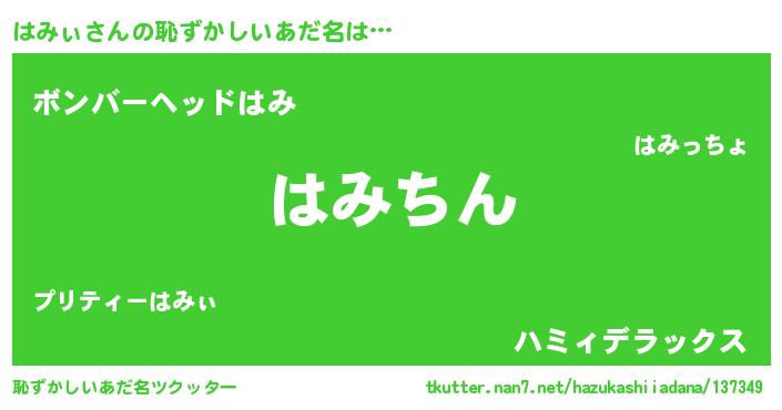 | 意味不明あだ名 | 『しいたけ科はみぃ属』『永久保存はみぃ』 |