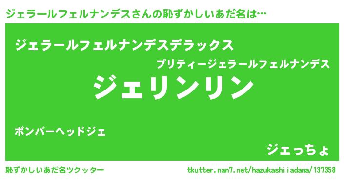 | 男性向けラノベタイトル風あだ名 | 『はたらくジェラールフェルナンデスさま!』 |