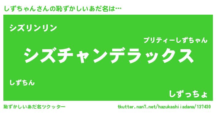 | ヘコむあだ名 | 『しずっ子』『牛乳』『しずもー』 |