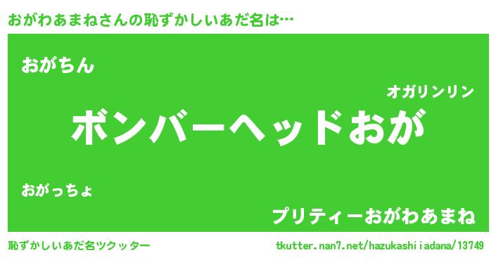 | ヘコむあだ名 | 『おがわあまね(震え声)』『おがにゅー』 |