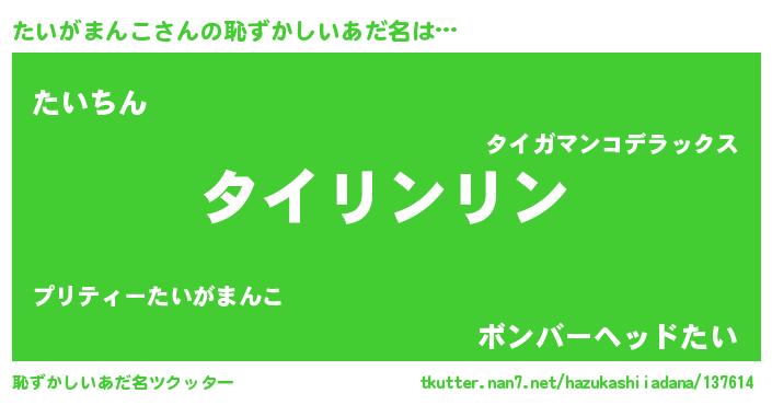 | ヘコむあだ名 | 『たいぷりん』『たいがまんこ(遠い目)』 |