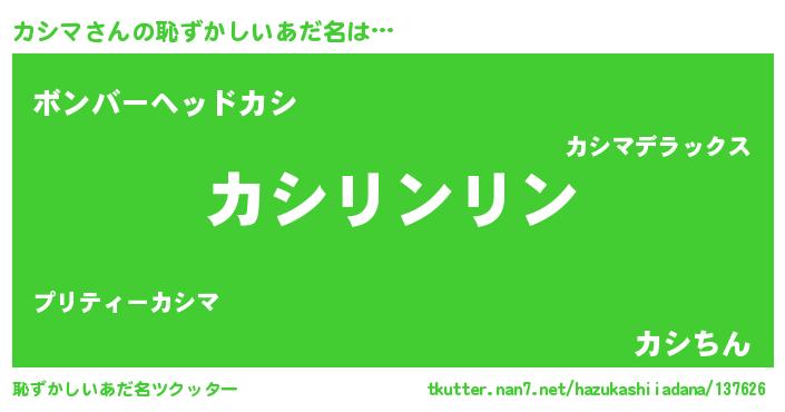 | ヘコむあだ名 | 『カシぷりん』『カシマ(笑)』『牛乳』 |