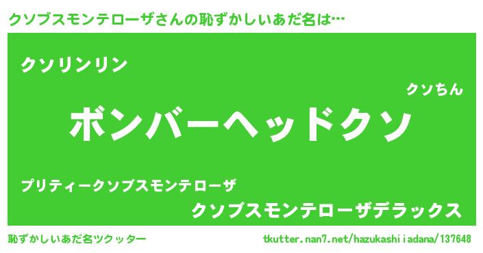 | 男性向けラノベタイトル風あだ名 | 『ノーゲーム・ノークソブスモンテローザ』 |