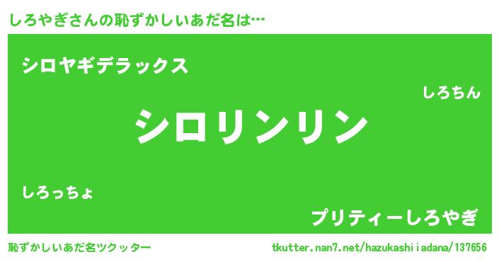 | ヘコむあだ名 | 『しろ太郎』『しろにー』『なまこ酢』 |