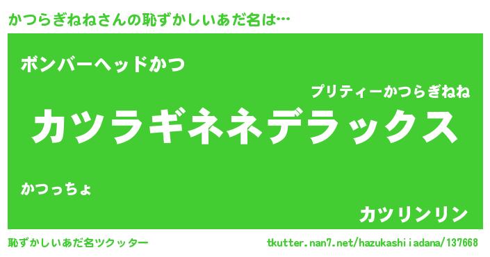 | ヒーロー風カッコイイあだ名 | 『究極戦士カツラギネネ』『魔戒騎士カツ』 |