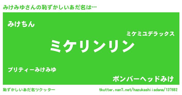 | 欧米人風あだ名 | 『ウサインみけみゆ』『ダニエルみけみゆ』 |
