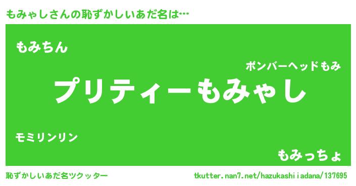 | 意味不明あだ名 | 『ペロリンもみゃし』『永久保存もみゃし』 |