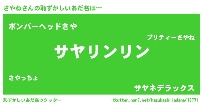 | 男性向けラノベタイトル風あだ名 | 『さやねの嫁は女の子じゃないと思った?』 |