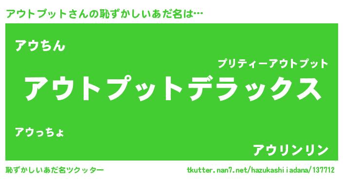 | ヘコむあだ名 | 『アウトプット(笑)』『アウぷりん』 |