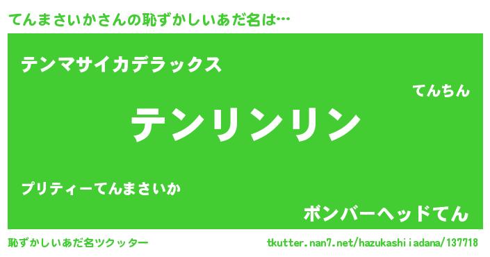 | ヘコむあだ名 | 『てんぷりん』『てんまさいか(笑)』 |
