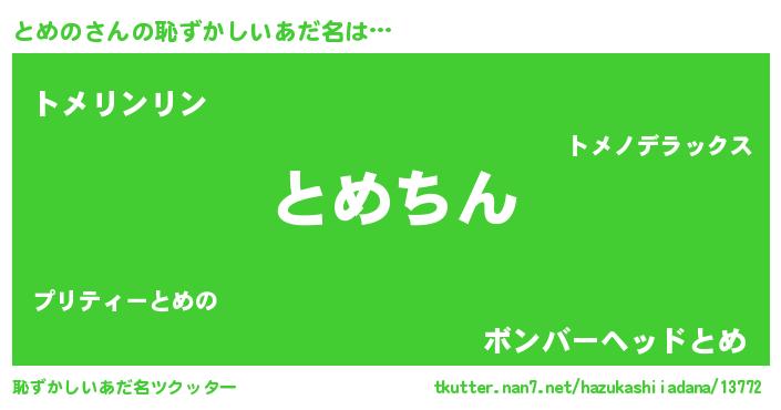 | ヘコむあだ名 | 『とめの(震え声)』『とめぷりん』 |