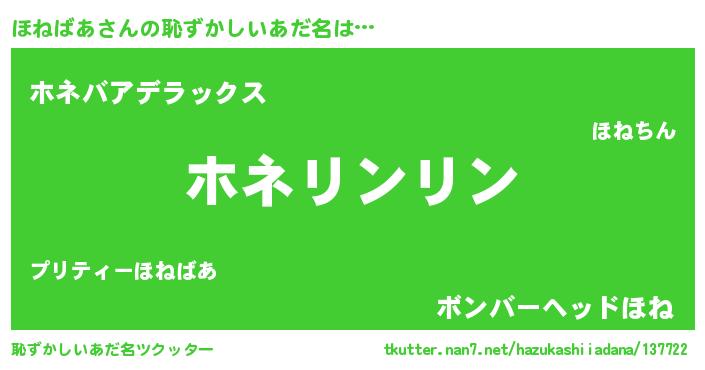 | 意味不明あだ名 | 『住所不定無職ほねばあ(4歳)』 |