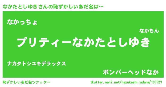 | ヒーロー風カッコイイあだ名 | 『スーパーナカタトシユキ』 |