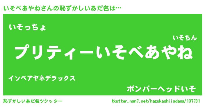 | 欧米人風あだ名 | 『ダレノガレいそべあやね』 |