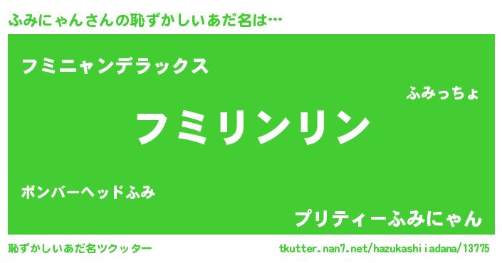 | ポケモン風あだ名 | 『ヒフミニャン』『フミゴンZ』 |