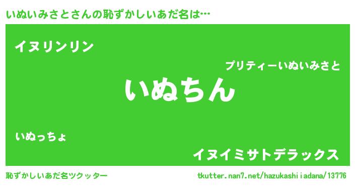 | ヘコむあだ名 | 『いぬいみさと(爆)』『いぬ太郎』 |