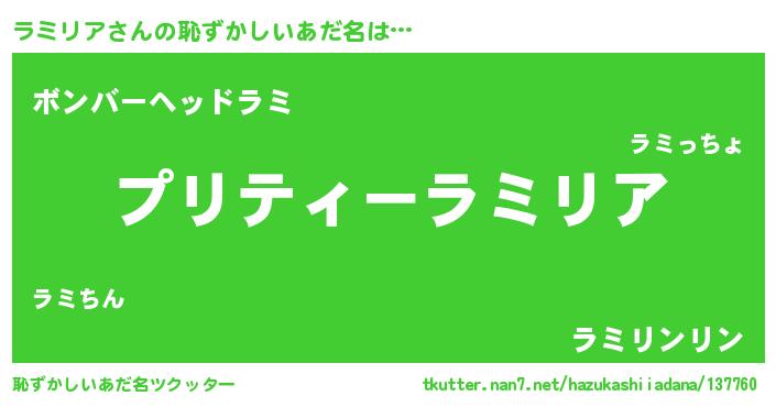 | ヘコむあだ名 | 『ラミもー』『ラミを』『つくし』 |