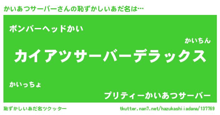 | 意味不明あだ名 | 『自称かいあつサーバー』 |